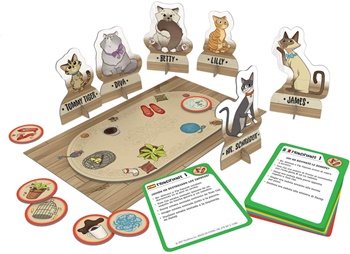 Un ovillo de lana deshecho y un pajarito desaparecido. ¿Quién habrá sido capaz de llevar a cabo semejantes fechorías? Delante de nosotros tenemos nada menos que a seis sospechosos, peludos y de cuatro patas. Para desentrañar el misterio, en cada partida debes guiarte por la carta de desafío correspondiente, tratando de deducir paso a paso dónde estaba colocado cada elemento.