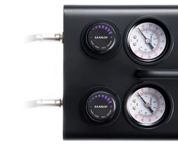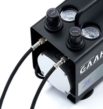 El sistema de doble salida de aire funciona de forma independiente. Esto le permite compartir el compresor con otro usuario o utilizar dos aerógrafos diferentes sin necesidad de intercambiarlos.