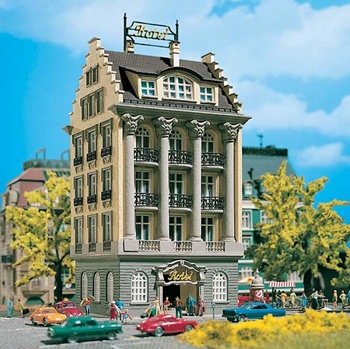 Edificio Hotel. Medidas: 8,5×8,3x17cm.