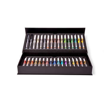 Estuche de lujo con la gama completa de los Playmarkers. Incluye los 34 colores en dos bandejas de espuma dentro de una elegante caja rígida de color negro, serigrafiada y con sistema de cierre imantado.
