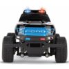 Poder policial – Estilo estadounidense Esta potencia se enfrenta a los criminales en misiones todo terreno con neumáticos neumáticos, una caja de cambios metálica duradera, una carrocería de carreras flexible y robusta y una precisa tecnología de control proporcional digital. Con 26,5 cm/10,6 pulg. en longitud, el Raptor puede alcanzar velocidades máximas en carretera de hasta 25 km/h – 15,5 mph. Las luces de emergencia azules y rojas añaden aún más autenticidad al aura de las fuerzas del orden . Los conductores de 6 años en adelante conducen la Ford F-150 Raptor Police hasta 20 minutos antes de que la batería LiFePo4 de 6.4 V y 700 mAh incluida tome un descanso de recarga de 90 minutos. Par a ahorrar energía de la batería, el vehículo se apaga automáticamente cuando no está en uso.