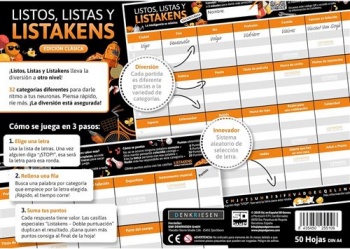 Con 32 categorías diferentes, cada ronda comienza eligiendo una letra al azar. A partir de ahí, los jugadores deben encontrar palabras que empiecen por esa letra y encajen en cada categoría, ¡antes de que se acabe el tiempo! Las respuestas se anotan en una hoja, y las casillas especiales Listakens duplican la puntuación.