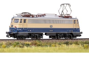 Locomotora eléctrica clase E10.12 Ferrocarril Federal Alemán "Bügelfalte" / "Pantalón de Pantalón"de la DB. Esquema de pintura básica de cobalto azul / beige, como locomotora Rheingold.