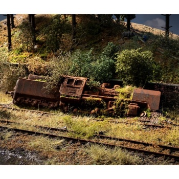 Tras el gran éxito de nuestra serie Lugares Olvidados el año pasado, este año tenemos otra fantástica maqueta para ampliar la colección. La locomotora de vapor muestra claros signos de deterioro: manchas de óxido, pintura descascarada y partes cubiertas de vegetación, evocando una época pasada: una pesadilla para cualquier aficionado al ferrocarril.