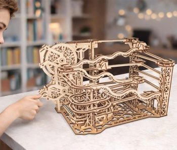 El kit mecánico de madera Marble Run es un modelo cautivador que convierte el montaje en una verdadera aventura de ingeniería. Paso a paso, 294 piezas se unen para crear un mecanismo complejo donde las bolas de metal corren a lo largo de pistas sinuosas, son elevadas a la parte superior por un sistema inteligentemente diseñado, y luego viajan de nuevo hacia abajo.