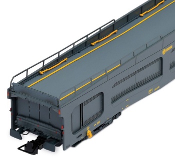 Portacoches RENFE DDMA, decoración color gris, con rejillas antivandálicas, época IV.