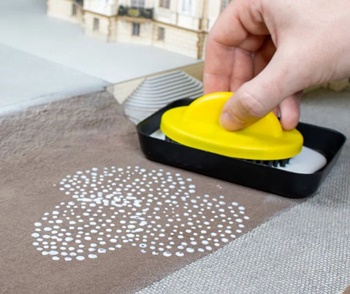 El conjunto contiene dos tamaños de sello: uno grande para prados anchos y uno pequeño para un trabajo preciso, por ejemplo, en terraplenes de ferrocarril. La bandeja adhesiva adjunta facilita la aplicación. Después de su uso, simplemente limpie los sellos con agua.
