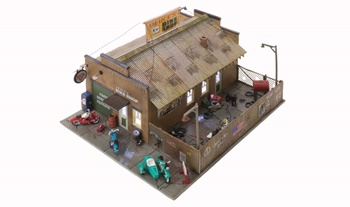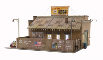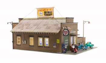 Aspiran el lado 'velocoso' de tu pueblo con una pizca de bengala histórica. La Tienda de Bicicletas de Deuce representa un escenario de 'cazador fácil' nostálgico con un detalle increíble. Los detalles exteriores incluyen un techo de 'metal' desgastado y revestimientos, letreros y calcomanías, una vieja máquina de pop y un patio vallado lleno de perro chatarrería y piezas antiguas de bicicletas.