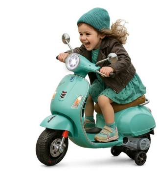 Aquí se respira claramente el estilo italiano en las habitaciones de los niños! La Vespa GTS 125 Ride-on trae el estilo de vida del Dolce Vita directamente a casa. Este pequeño scooter Vespa, que se puede encontrar en todas las ciudades italianas, ahora se ofrece como una moto miniatura licenciada por JAMARA. Los conductores más pequeños, a partir de los 3 años, pueden recorrer desde su habitación hasta el salón con este scooter. Con su diseño con licencia oficial y detalles realistas como el tablero de instrumentos iluminado y el sonido del motor al arrancar, cada niño sentirá que está montando una verdadera moto. Los potentes motores de tracción y la batería de iones de litio de 12,6V garantizan largas horas de conducción y mucha diversión. El asiento de cuero sintético acolchado proporciona la máxima comodidad, mientras que las ruedas de apoyo aseguran un paseo seguro. El puerto USB, la entrada de audio Aux y la ranura para tarjeta microSD con función MP3 añaden más diversión musical al viaje. El diseño fiel al original, las ruedas de apoyo y los anillos de goma Ultra Grip en las ruedas hacen de la Vespa una verdadera joya, mientras que el arranque sin llave con solo presionar un botón asegura comodidad. ¡Un vehículo perfecto para los pequeños fans de Vespa! Y mientras los niños se divierten, los padres pueden tomarse una pequeña pausa con un espresso.