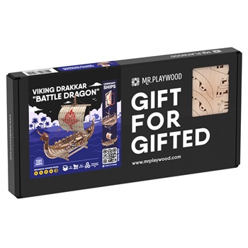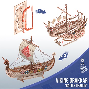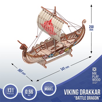 Kit de construcción de madera Mr. Playwood Drakkar Vikingo "Battle Dragon" con 131 piezas.
